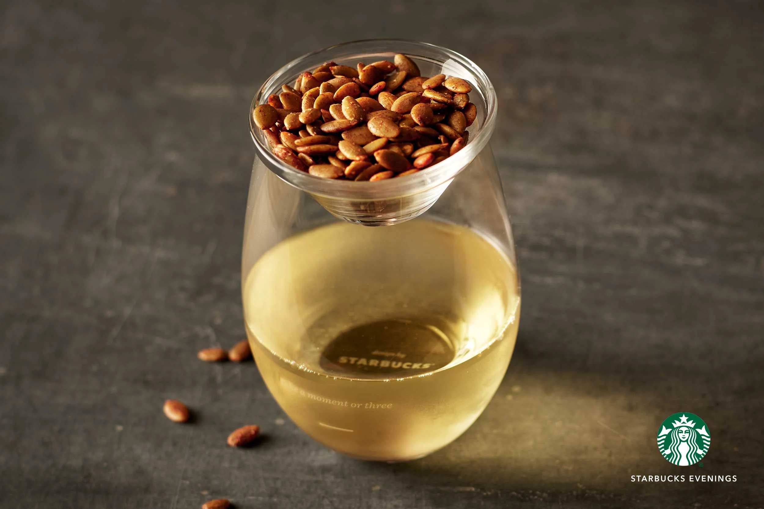 Sauvignon Blanc has a new #BFF. Wine, pepitas, and more in select stores. #StarbucksEvenings
