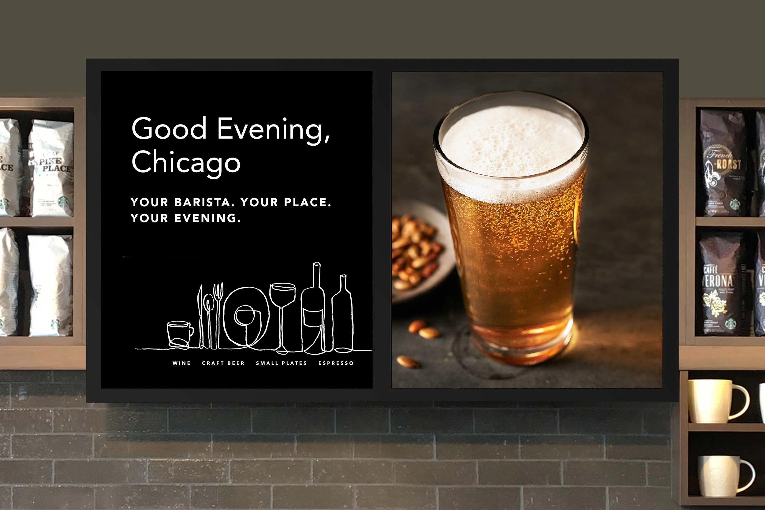 The challenge is that there is a disconnect between a consumers' quick morning coffee routine and visiting Starbucks later in the day as a way to unwind and enjoy beer and wine.
