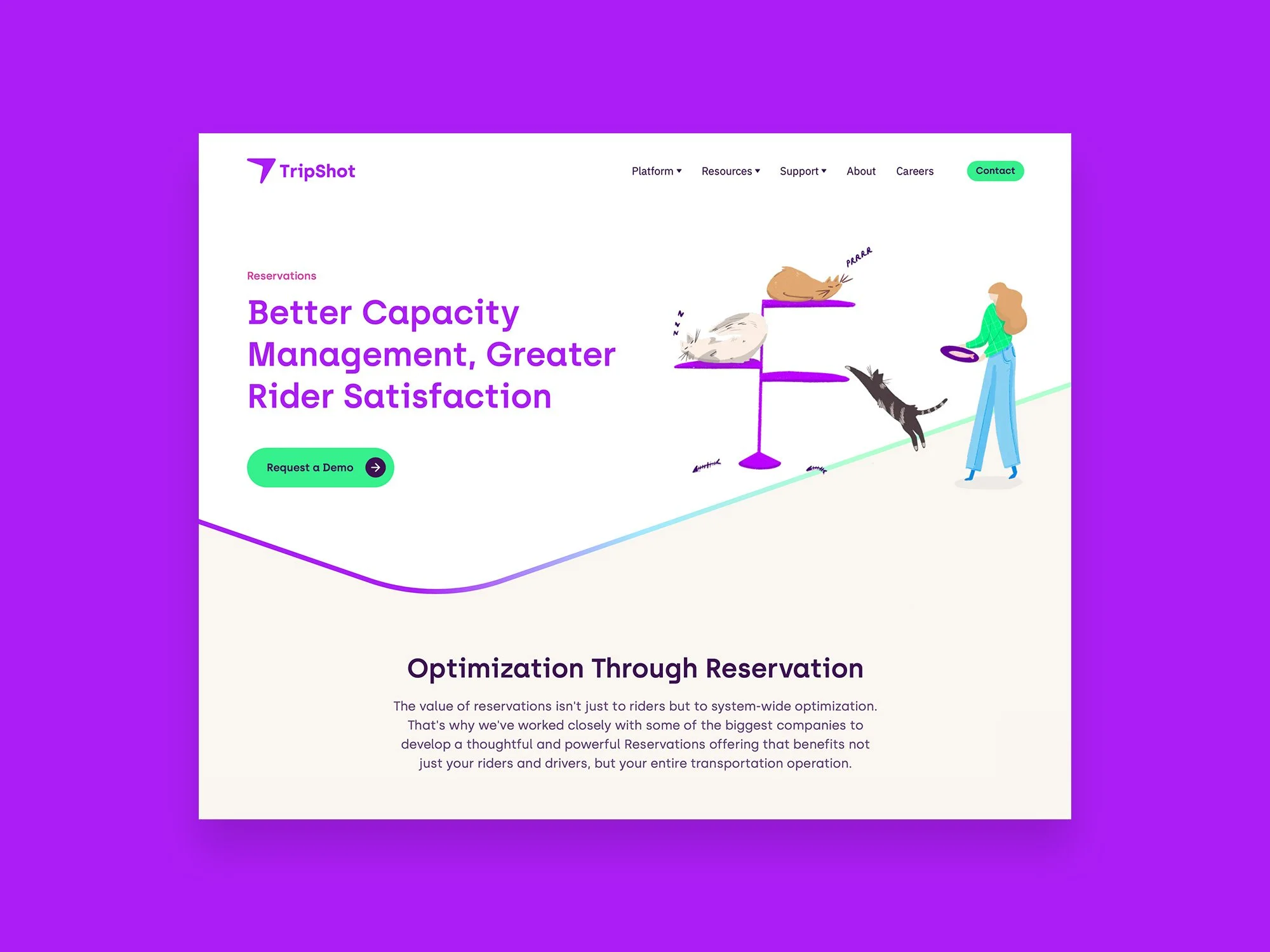 Led the redesign for TripShot, a mobility management platform in the transportation technology space. Their technology powers commute programs at the largest Silicon Valley tech companies, as well as hundreds of other companies and campuses.